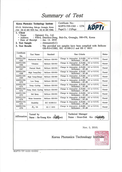 TEST 완료일 : 2010년 11월 5일