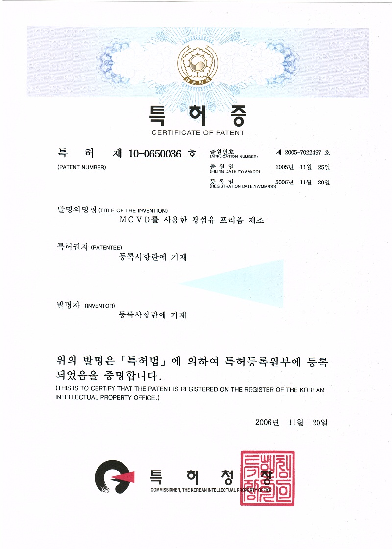 특허 | (대한민국) MCVD를 사용한 광섬유 프리폼 제조 페이지 정보 작성자 관리자 작성일11-08-05 21:18 조회21,119회 댓글0건 관련링크 이전글 다음글 검색 목록 본문 (대한민국) MCVD를 사용한 광섬유 프리폼 제조 댓글목록 등록된 댓글이 없습니다. 이전글 다음글 검색 목록