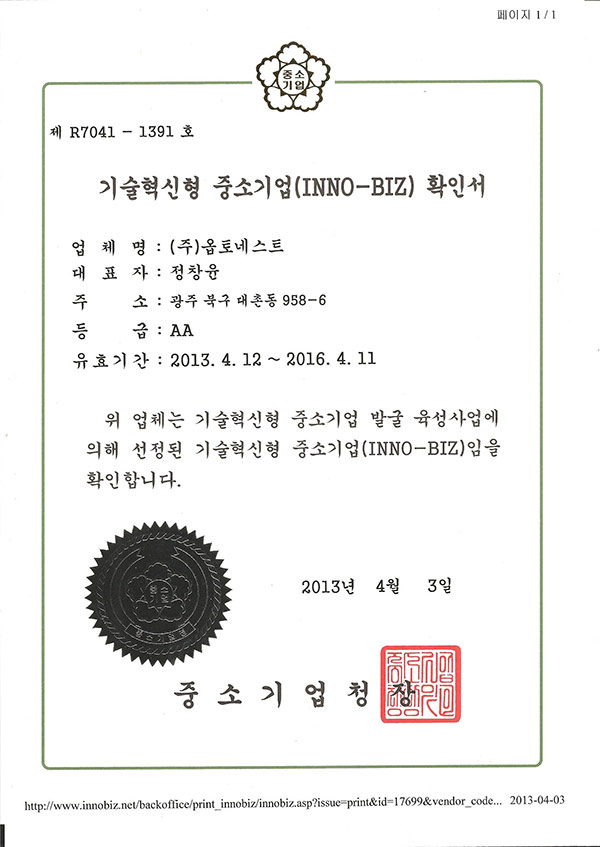 인증 | 기술혁신형 중소기업(INNO-Biz)확인서 페이지 정보 작성자 관리자 작성일13-05-23 09:29 조회21,907회 댓글0건 관련링크 이전글 다음글 목록 본문 기술혁신형 중소기업(INNO-Biz)확인서 댓글목록 등록된 댓글이 없습니다. 이전글 다음글 목록