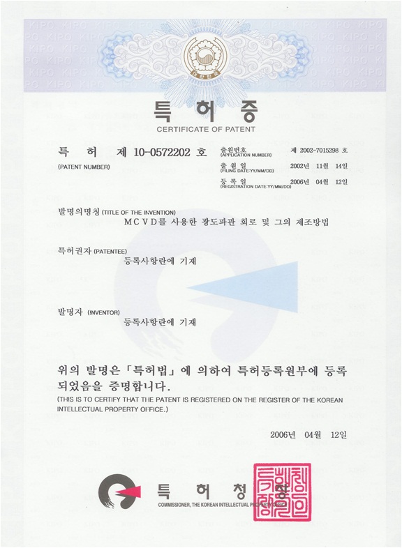 특허 | (대한민국) MCVD를 사용한 광도파관 회로 및 그의 제조방법 페이지 정보 작성자 관리자 작성일11-08-05 21:22 조회20,840회 댓글0건 관련링크 이전글 다음글 목록 본문 (대한민국) MCVD를 사용한 광도파관 회로 및 그의 제조방법 댓글목록 등록된 댓글이 없습니다. 이전글 다음글 목록